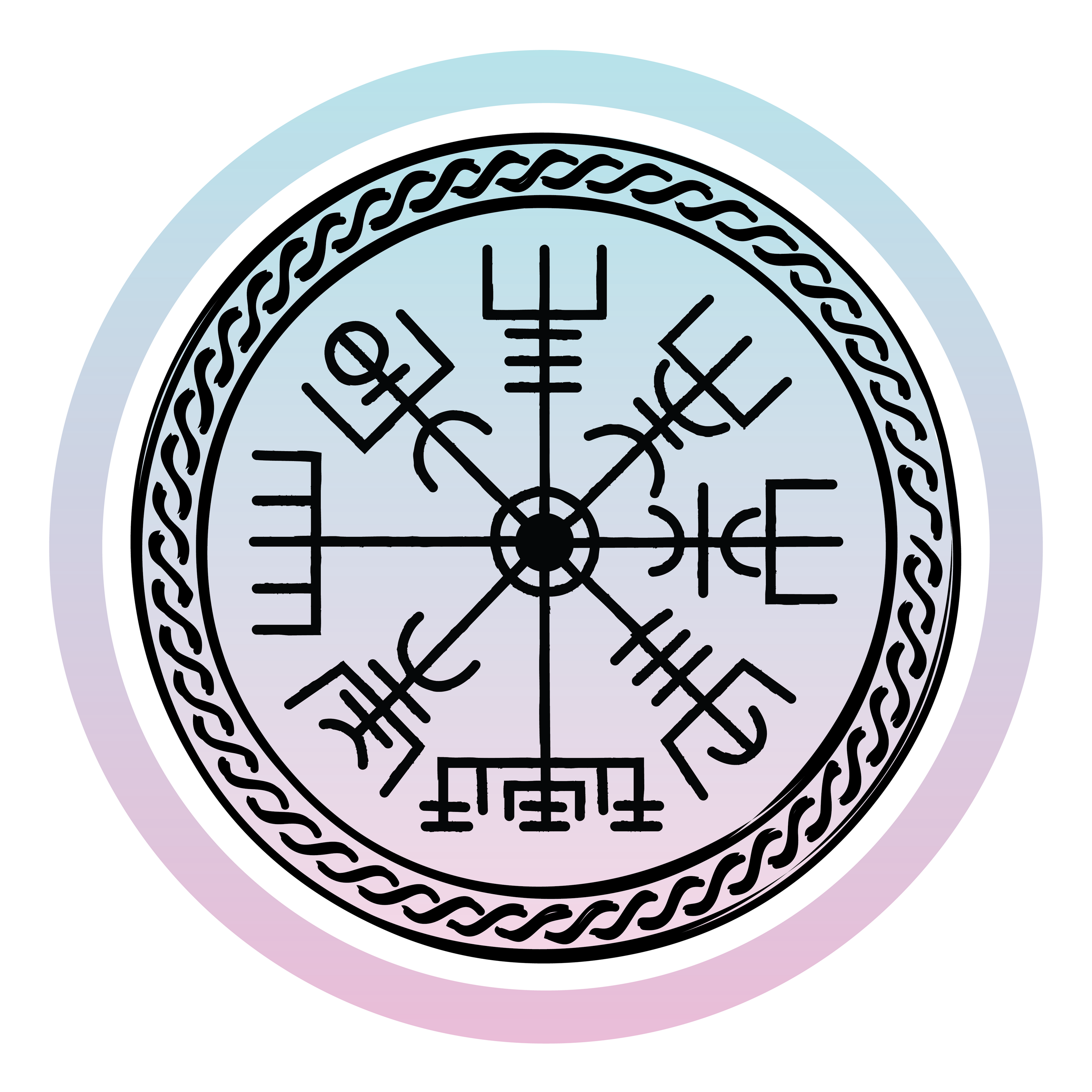 This wheel is a Vegvísir rewritten for your age: not a trinket of luck, but a geometry of orientation. The braided ring keeps ancestry in orbit; the spokes aim through storm and signal; the soft gradient carries a whisper of the digital aether that now surrounds our rites. At the hub sits the still point—the place a warrior learns to stand while the world turns.
